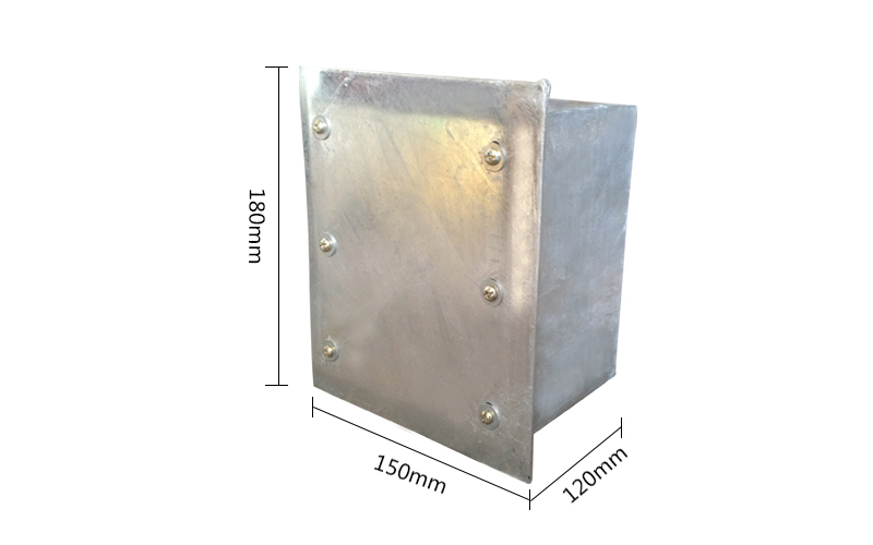 防護熱鍍鋅人防密閉接線盒在防護密閉門或臨時戰(zhàn)爭封堵外側受沖擊波方向,接線盒應采用防護蓋板,蓋板厚度應為大于或等于3mm的熱鍍鋅鋼板。防護密閉接線盒應采用熱鍍鋅鋼板,厚度大于或等于3mm。具體尺寸:180*150*120mm,蓋板尺寸為:210*180mm。