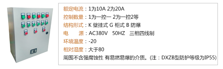 (3)周圍不含強腐蝕性 有易燃易爆的介質(zhì)。(注:DXZB型防護等級為IP55)